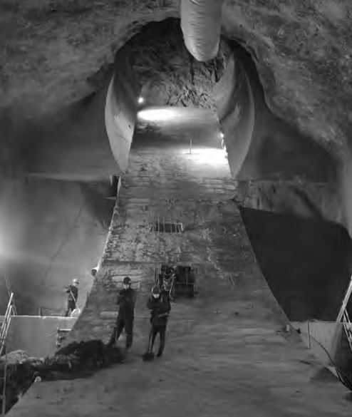 高效出渣系统:创新设计专用溜渣槽与喷水降尘系统,有效解决大倾角下渣石高速滚落、碎石飞溅等安全难题。